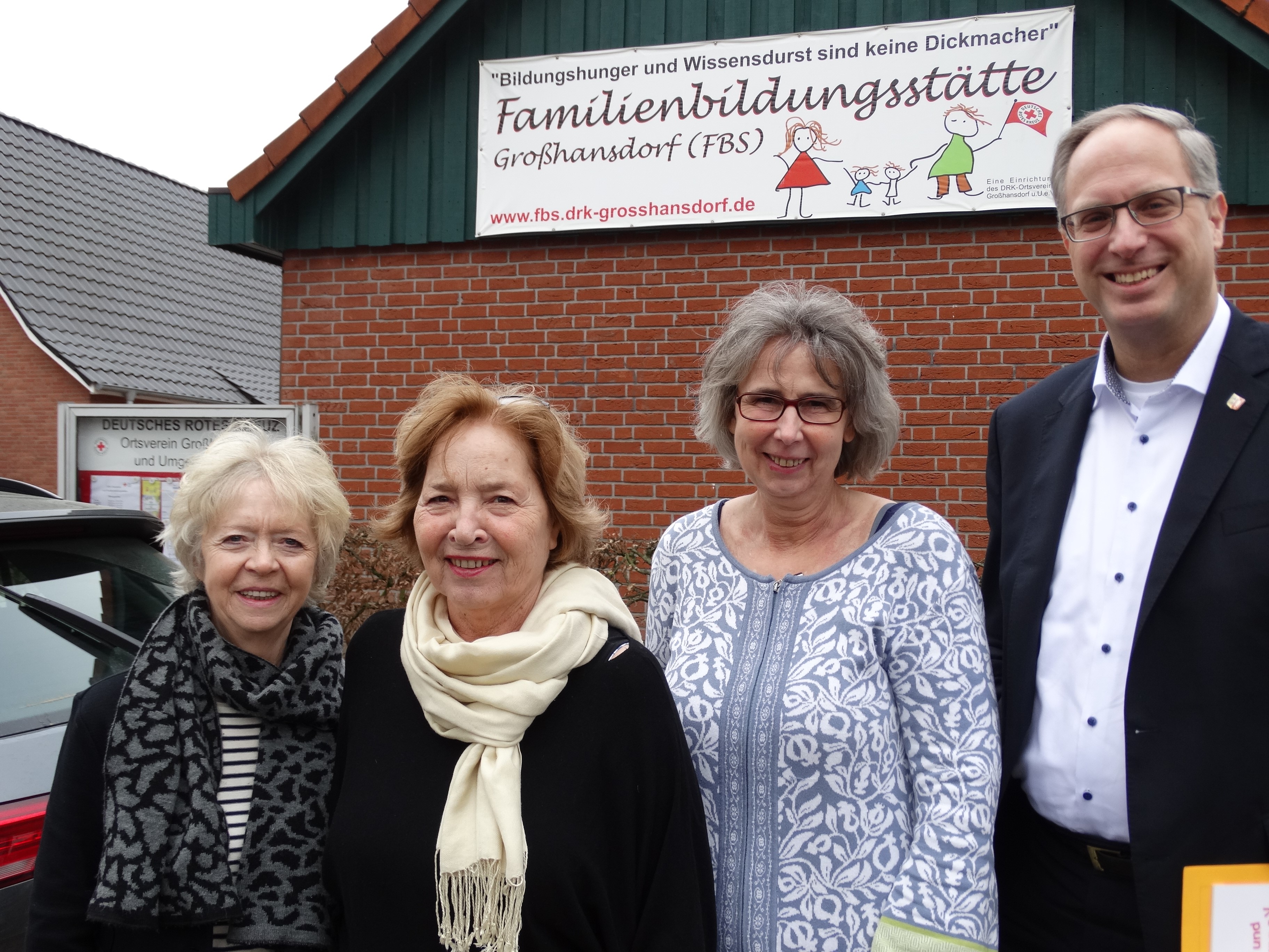 Eine willkommene Botschaft für Susanne Bierwirth, die als 2. Vorsitzende des DRK-Ortsverbandes auch verantwortlich für die Familienbildungsstätte (FBS) in Großhansdorf ist. „Wir strecken uns hier täglich nach der Decke. Vom Personal und den Räumen her sind wir an der Grenze unserer Möglichkeiten“, sagte sie, die wie fast alle Mitarbeiter der FBS-Verwaltung ehrenamtlich tätig ist. „Wir freuen uns sehr über die zusätzliche Förderung, die gerade rechtzeitig kommt und uns spürbar helfen wird. Denn das Ehrenamt bricht weg, wenn die Belastung zu groß wird. Man macht das aus Spaß an der Sache, aber wenn der durch Überlastung verloren geht, wird es schwierig.“