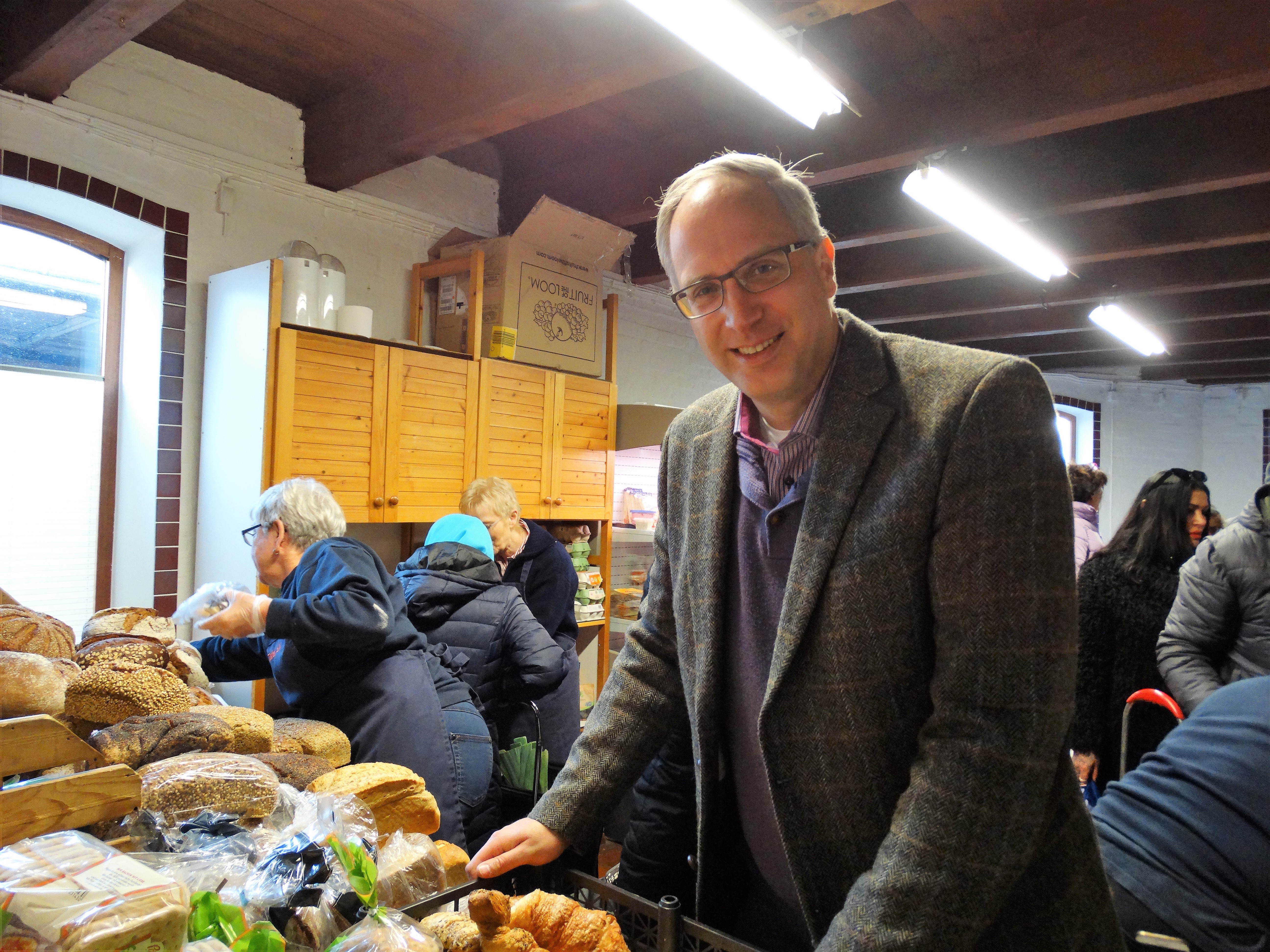 Tobias Koch war überrascht davon, welch logistischer Aufwand für den kontinuierlichen Ablauf mit dem Einsatz von etwa 120 Ehrenamtlichen notwendig ist. Holger Pruß und Bernd Linde berichteten ihm auch von ihren Nöten und Sorgen. Voraussetzung für die Tafel, so Pruß, seien zwar viel ehrenamtliche Arbeit und die regelmäßigen Lebensmittelspenden, jedoch würde zusätzlich Geld benötigt, um anfallende Kosten unter anderem für die Miete der Ausgabestellen und den Betrieb der Fahrzeuge zu decken. Zwar werde die Tafel von Kommunen unterstützt und erhalte auch Geldspenden von Firmen und Einzelpersonen, doch reichten alle Einnahmen nicht immer aus. Die beiden Tafel-Organisatoren wünschten sich mehr Entlastung: zum Beispiel durch einen höheren Mietzuschuss der Stadt Ahrensburg, weil die Kosten sich durch den notwendigen Umzug der Ausgabestelle in die Große Straße 22 zum 1. Januar 2020 erhöhen werden.
