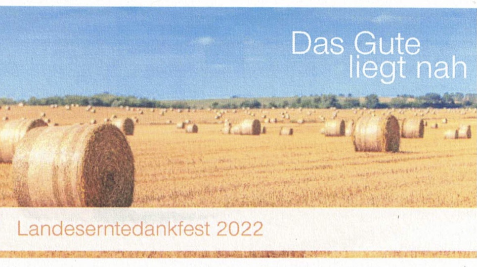 Das Landeserntedankfest Schleswig-Holstein wird dieses Jahr am Sonntag, dem 2. Oktober 2022 in Lütau im Kreis Herzogtum Lauenburg gefeiert. Unter dem Motto „Das Gute liegt nah“ findet ein Festgottesdienst, Ernte-Umzug und buntes Familienprogramm statt. Gerne nehme ich hieran teil und höre mir die Predigt der Bischöfin Kirsten Fehrs an.